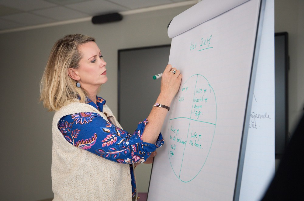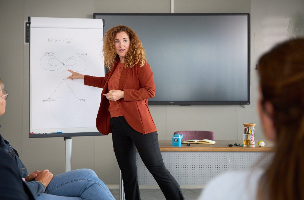 Er zijn tijdens deze opleiding twee dagen waarin jij een presentatie geeft voor de rest van de groep. Eén keer halverwege – ter afsluiting van blok 1 – en één keer aan het einde van de opleiding. In deze presentatie laat je zien wat je de afgelopen tijd geleerd hebt. Ook vertel je over de manier waarop je het geleerde toepast op de werkvloer. Bovendien lever je uiterlijk een week voor deze presentatiedag jouw portfolio in. De presentatie en het reflectieverslag dat je na deze dagen inlevert worden beoordeeld met een cijfer.